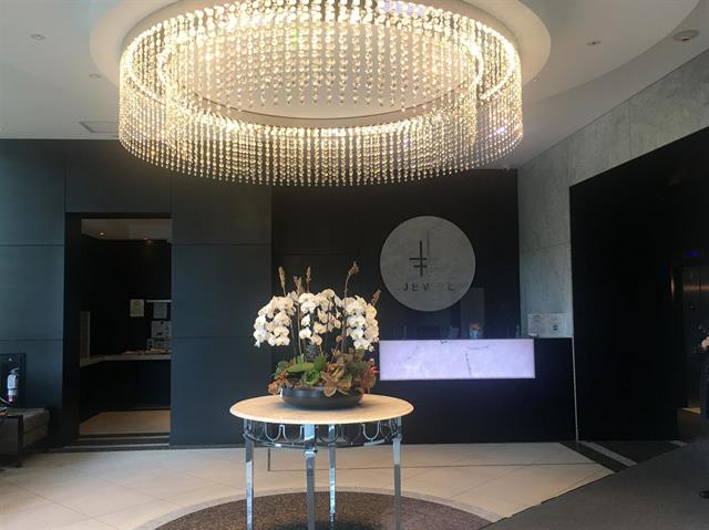 Georgie Award winner JEWEL 2 by BOFFO in Metrotown. Luxurious building with 9 ft. ceilings, over-sized windows, 220 sq. ft. balcony, 2 bedrooms, 2 baths with marble counters, gourmet kitchen with large granite island, stainless steel appliances, gas range, built-in microwave and wine cooler. Concierge, Social Lounge with kitchen & media room, Gym, Hot Tub, Playground. Fabulous location with the park across, steps to Patterson Station, tennis courts, Crystal Mall and Metropolis Mall.