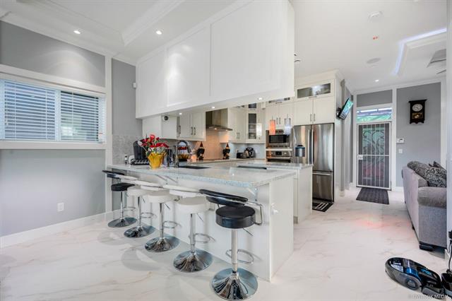 Quality, Custom built 3 level 5 years old house located in a very convenient location. 3 bedrooms with 2 full baths and a deck with view on the top floor. Main floor has a Gourmet kitchen adjoining a family room, living room, a 3 piece washroom and a spice kitchen. Basement has a one bedroom legal suite ( could be 3 bedroom ) for mortgage helper. Comes with all modern features. Central air condition, built in Sound system, security system, alarm (monitored) system, HRV, radiant heating, high ceilings with lots of detailing and more. Fully fenced , landscaped, a fish pond, a double garage and a big deck for your summer gatherings. Close to school, bus, Joyce Station and shopping. A pleasure to show. By appointment only. Covid Rules apply.