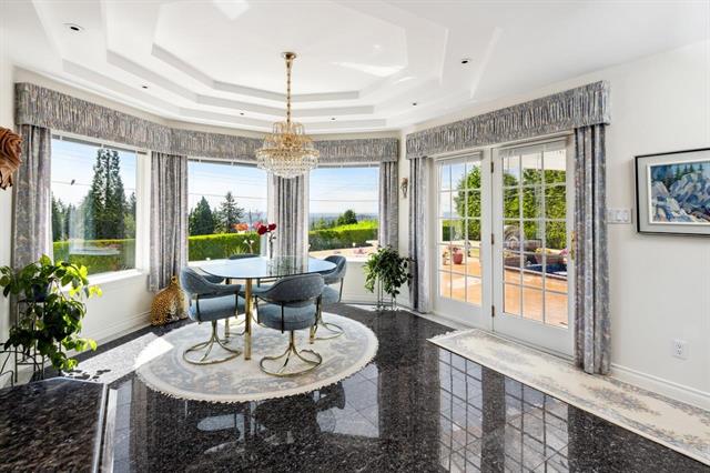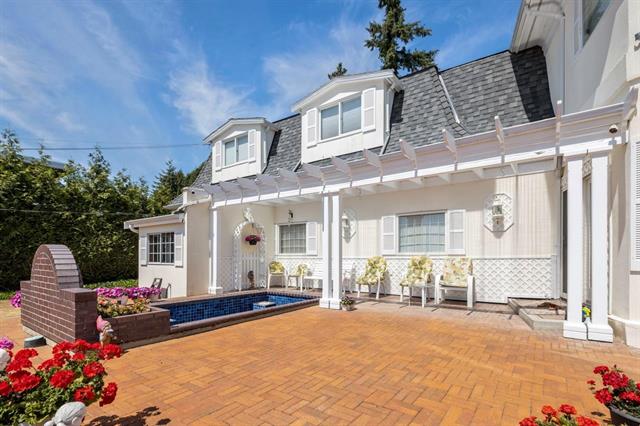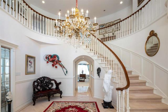 Trophy estate in the lower British Properties! South Colonial beauty, nestling on a 20,500 sf level lot w/ spectacular views of Lions Gate Bridge & DT. 1st time on the market, custom build w/ the utmost exquisite detailing, quality & love. Soaring foyer w/ stained glass dome skylight, elegant semi-circular staircase, cross hall living/dining, music room, TV room, gourmet kitchen & beautiful, covered patio by the pond in the backyard. Upper flr has the huge primary suite w/ jacuzzi tub, bar & gorgeous sitting room, 3 additional bdrms, office & self-contained 1 bed suite. 2,500 sf unfinished basement is ready for your ideas. Step away to Hollyburn Country Club, top-ranking Chartwell Elementary, Sentinel Secondary Schools, Capilano Golf Club. Can’t forget the 3-car garage! Truly magnificent!