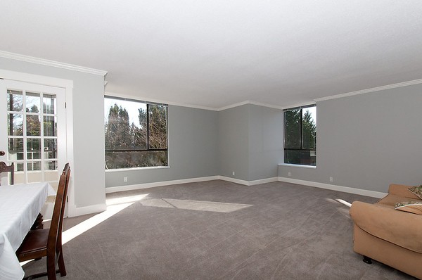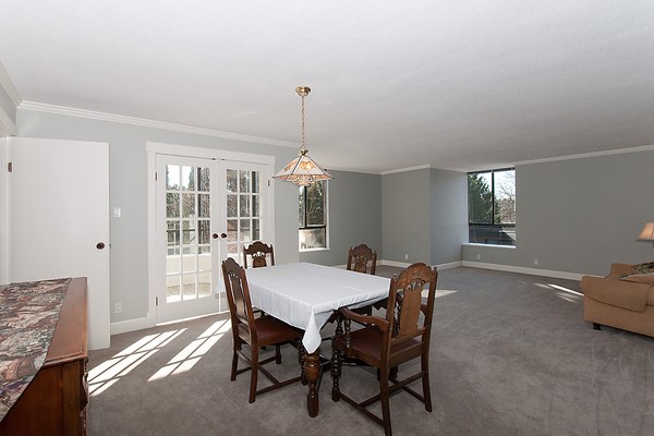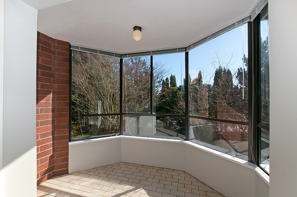 Arbutus Village condo!Generous space suits house sized furniture. Spacious & bright SW corner unit in this well maintained concrete building.Two bedrooms, 2 baths with a den & solarium. Eating area in the kitchen with new counters, sink & faucets, dishwasher and microwave, newer paint and carpets. Lovely green, treed outlooks, 2 underground parking and a storage locker.